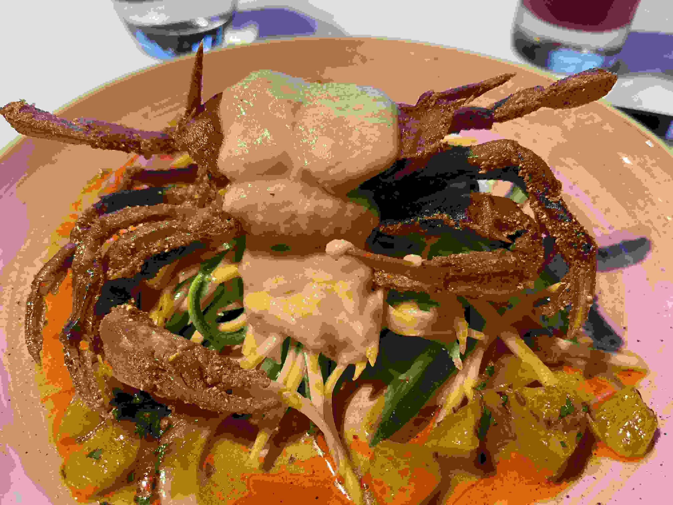 I caught the last of the season’s soft shell crab at Waterbar in San Francisco’s FiDi. I’d rather have the curry sauce on the side for dipping but deeply appreciated that this dish was gluten-free. I ate every available morsel of crab, leaving only the carapace.