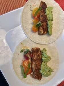 Less successful were Kelp Burgers (p. 194). I have plentiful kelp in my cabinet, including a 4-ounce pack called for in the recipe. Four ounces of dry kelp when cooked yielded a massive amount, far too much for the recipe. A clearer ingredient dek would have helped – 4 oz. prepared kelp, or similar. I whittled down the amount to 4 ounces, then chopped and blended as called for with mashed sweet potato and black beans. Still, the recipe did not work. The veggie burgers were too soft, the mushrooms and panko not doing enough to hold the burgers together. Everyone tried it. Noone went further than a first bite.