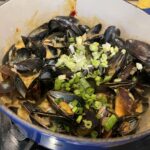 Kondo is clearly comfortable with cooking all manner of fish. Mid-August means the tail-end of halibut season in NorCal so my first Kondo recipe was Blackened Halibut Tacos with Avocado Salsa. $50/lb at my local grocery store, fresh halibut filets were a mere $30 per pound at my local farmers’ market and I got to chat with the man who raised the fish from the ocean – bonus! This recipe was exceptional; the spice blend was smoky and richly flavored with smoked paprika and thyme, the salsa was bright and jalapeño hot and every single person at my table, even the avowed non-fish eaters, loved it. I had similar success with Gochujang Curry Mussels, p. 154 ($4.99/lb.). Even though my gochujang was a little past its prime, it shone when paired with coconut milk and garlic.