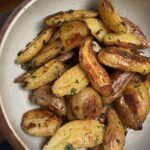 I made Rhubarb Muhammara (p. 56) and Roasted Potatoes with Dill & Garlic (p. 174) as side dishes for a traditional ham dinner. The additions of a compound lemon butter and herbs for the potatoes made them delicious and fresh, the lemon pinging through the garlic and mild herbs. The muhammara’s drab color was off-putting to my children – next time I’ll add more pomegranate molasses to boost its reddish tint – but the flavor was delicious. I had plentiful leftovers and used it as a spread for my morning toast and as a companion for vegan cheese.